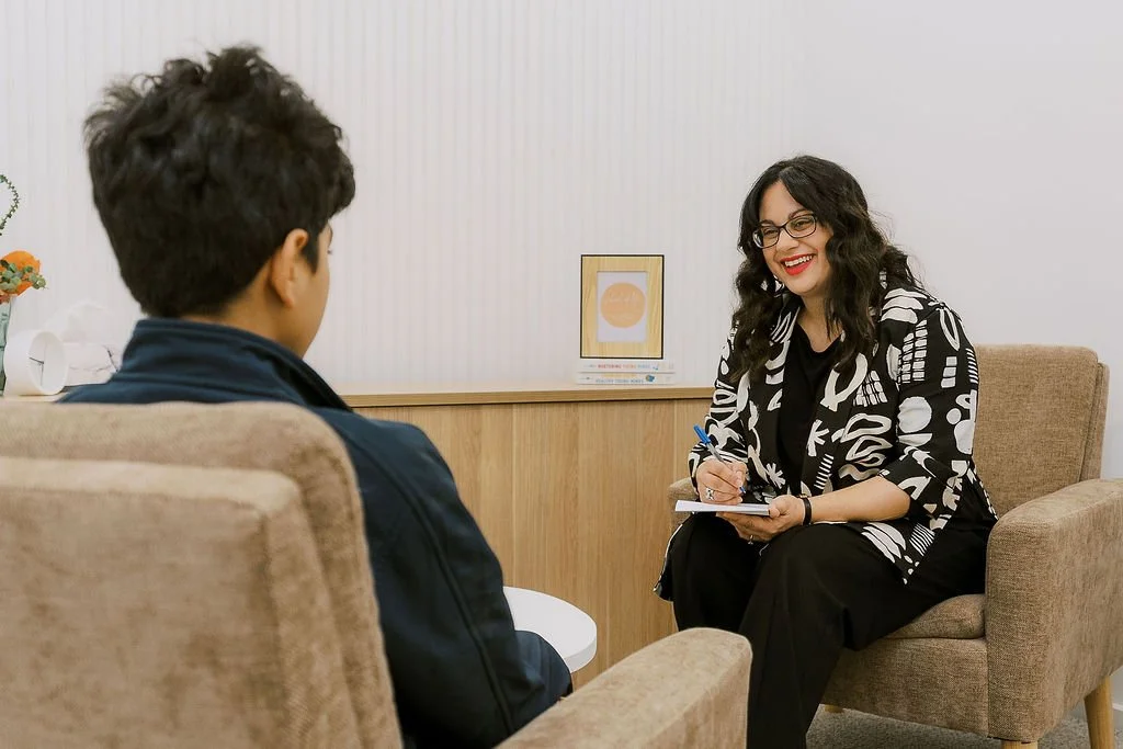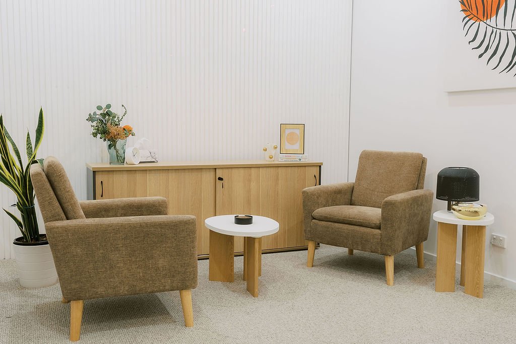 A private, thoughtfully furnished space for talk therapy and psychological support, offering families access to a holistic range of services under one roof.